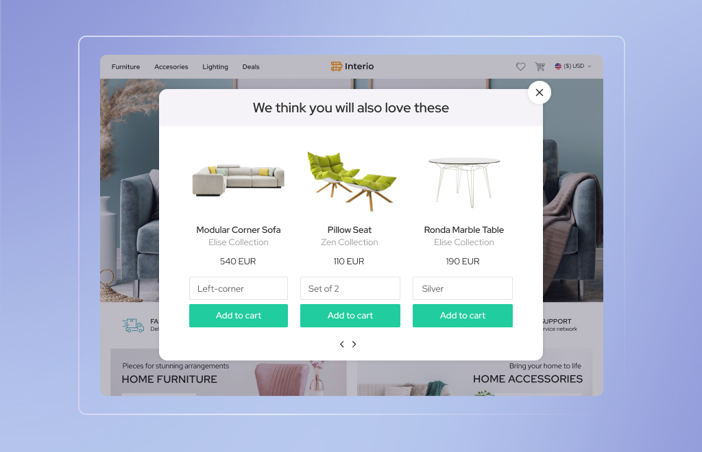 - Posibilitatea de a alege tipul de produse recomandate afisate in widget (Ex: similare, complementare etc.);