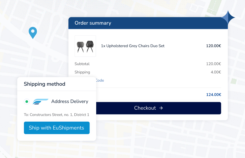 euShipments este o solutie completa dezvoltata in Bulgaria, care ofera servicii premium de curierat si fulfillment la nivel international pentru magazine online.Aplicatia permite integrarea magazinului tau cu sistemul Eushipments, pentru a putea ulterior sa generezi si sa printezi documentele AWB, dar si sa beneficiezi de optiunea de calcul automat al costurilor de livrare pe baza adreselor introduse de clienti.