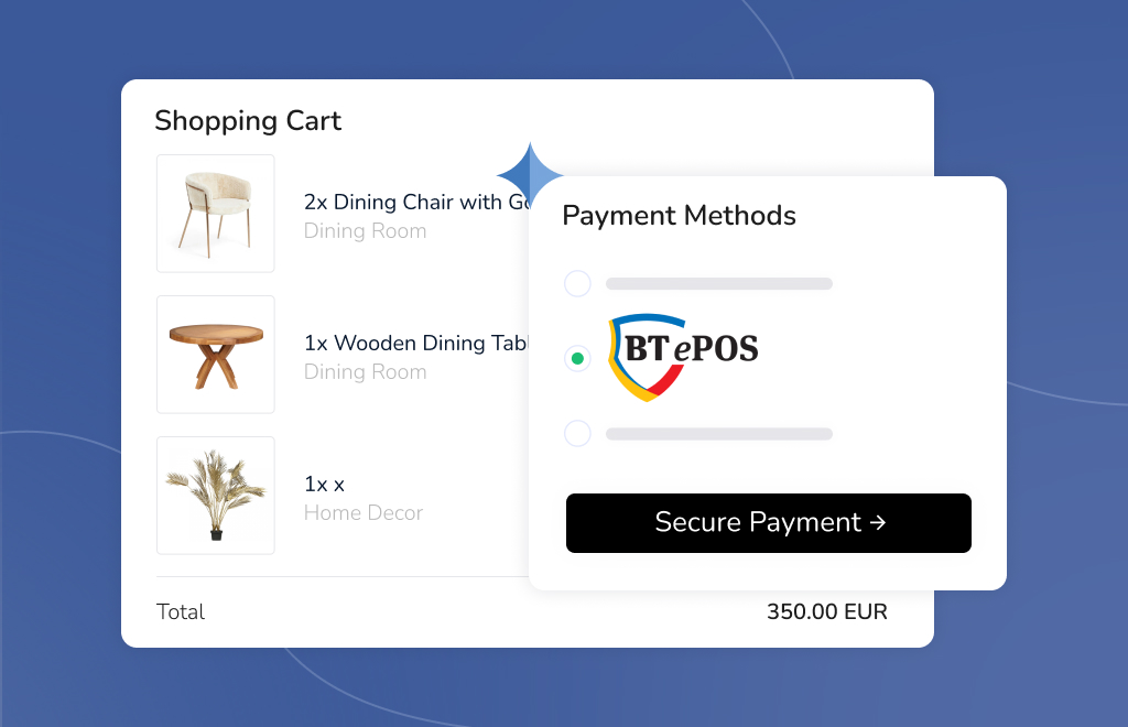 - Conectare sigura la sistemul iPay Banca Transilvania prin API;