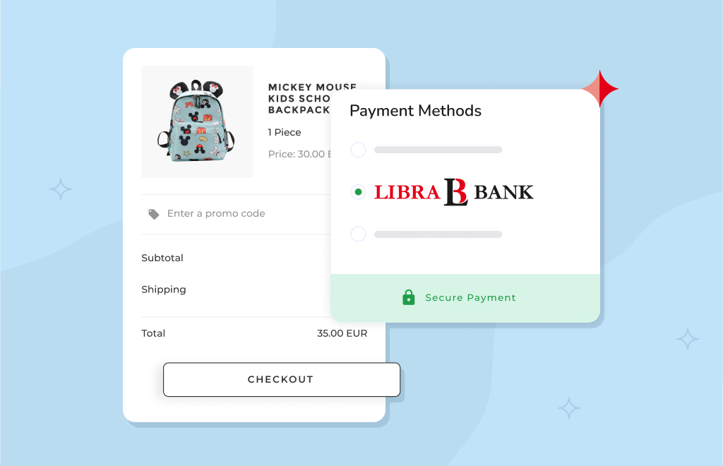 Libra Credit, serviciu oferit de Libra Bank, este un sistem online de creditare direct in magazin, oferit de una dintre cele mai dinamice banci din estul Europei.Prin activarea acestei metode de plata, vei oferi clientilor tai posibilitatea de a contracta direct un credit Libra si de a achita astfel comanda.