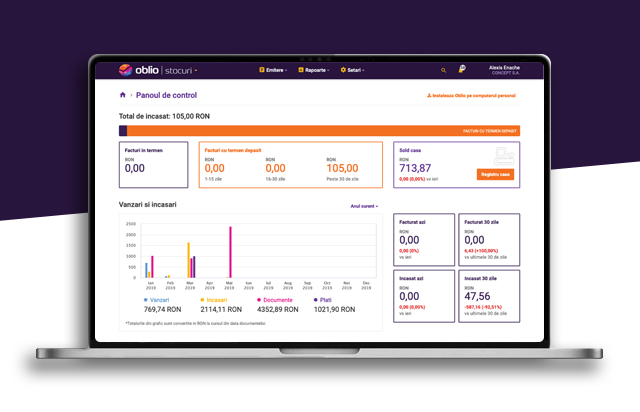 - Posibilitatea de sincronizare a stocului magazinului in functie de stocul din Oblio;