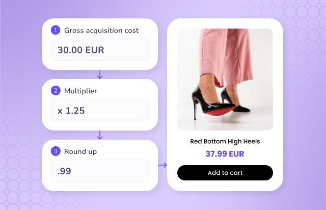 Functia iti permite sa calculezi sau sa ajustezi automat preturile de vanzare afisate in cadrul magazinului, pentru toate produsele create sau actualizate pe baza unui proces de import.Poti alege pretul pe care se va aplica formula de calcul (ex: pret de achizitie net sau brut) si mai departe poti defini diferite modalitati de ajustare: aplicarea unui multiplicator, adaugarea unei valori fixe, utilizarea un plafon minim sau maxim pentru pretul de vanzare rezultat, rotunjire etc..