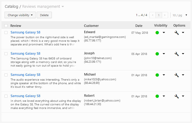 Ai de asemenea la dispozitie multiple optiuni pentru a decide cine poate posta review-uri, pentru moderarea review-urilor, selectia formatului de afisare in magazin si altele.
