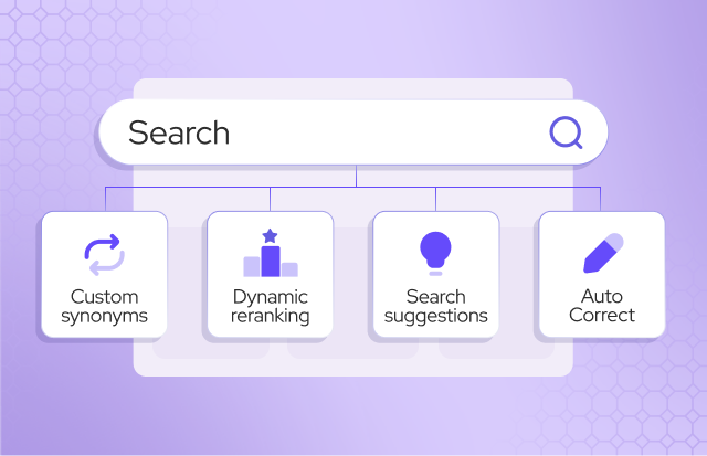 Aditional, poti utiliza optiuni precum cautarea dupa termeni alternativi de tip sinonime, controlarea rankingului de afisare a anumitor produse in functie de diferite scenarii de cautare, gestionarea automata a sugestiilor de cautare si corectarea automata a erorilor de scriere.