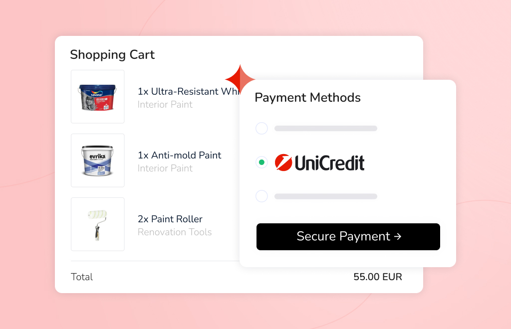Instaleaza aplicatia si conecteaza-ti magazinul cu sistemul de plata online eGenius de la UniCredit Bank, unul dintre cele mai apreciate si utilizate din Romania. Astfel, le oferi cumparatorilor magazinului tau un serviciu sigur si usor de utilizat pentru procesarea platilor online cu cardul.In setarile aplicatiei poti defini ca metoda de plata sa fie disponibila la checkout doar pentru anumite tari, metode de livrare, grupuri de clienti sau in functie de anumite categorii de produse. De asemenea, poti introduce un interval valoric al comenzilor pentru care plata prin UniCredit Bank va putea fi selectata in pagina de finalizare a comenzii.