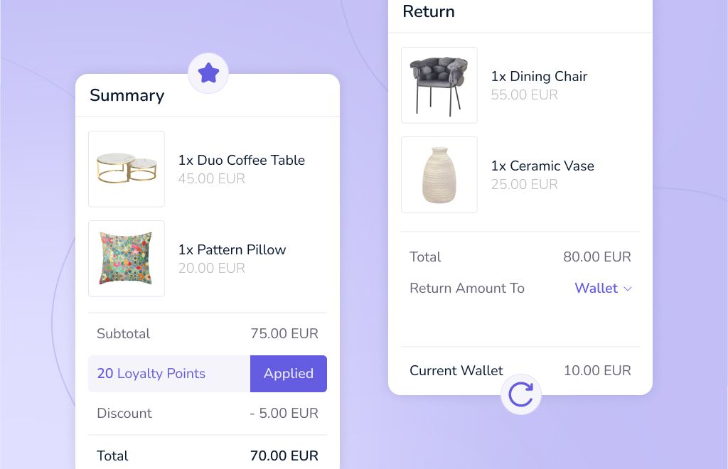 De asemenea, prin intermediul aplicatiei Wallet poti oferi clientilor posibilitatea de a alege ca valoarea retururilor sa fie rambursata in portofelul virtual.