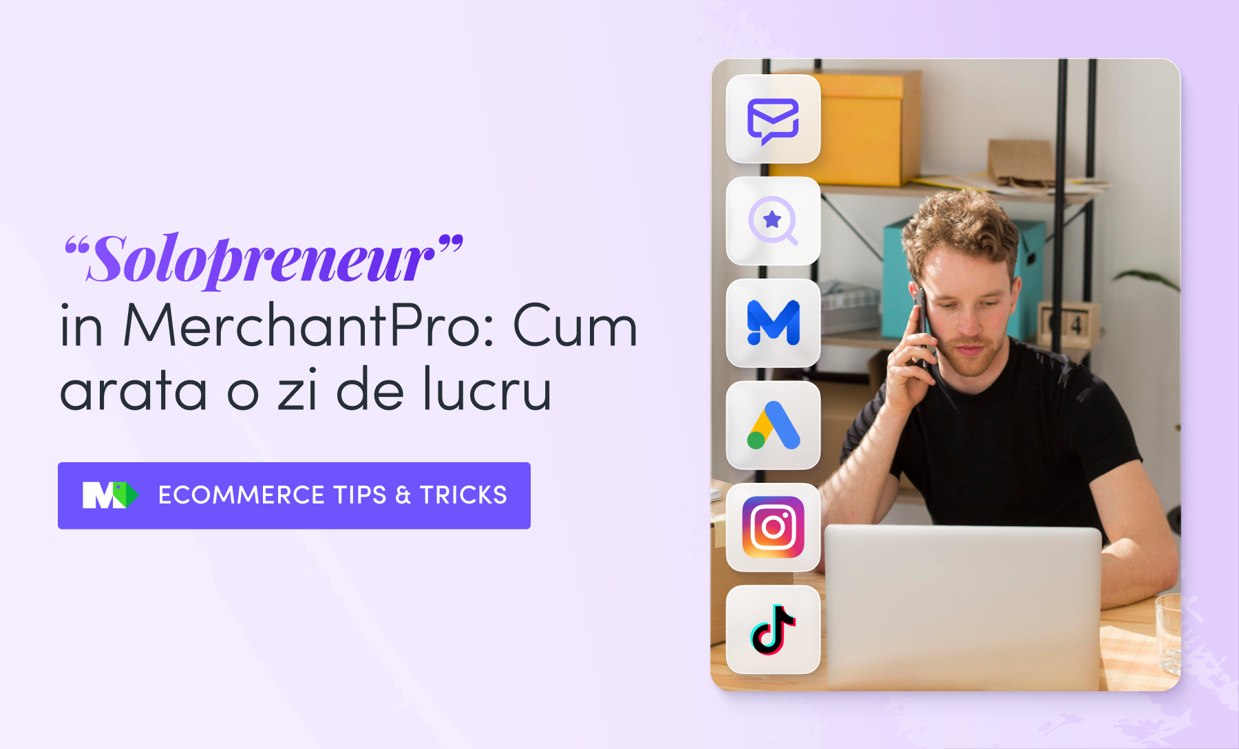 Insa, te-ai intrebat vreodata cat de mult iti usureaza de fapt automatizarile activitatea de zi cu zi? Pentru o intelegere mai buna, poate fi de ajutor o derulare a unei zile imaginare din viata unui antreprenor solo sau „solopreneur”. Mai exact, in acest articol prezentam la modul ipotetic fluxul unei zile din viata unui comerciant care isi gestioneaza afacerea online pe cont propriu, ocupandu-se de strategie, marketing, vanzari si livrare doar pe baza propriilor competente si, bineinteles, a automatizarilor moderne inteligente dsiponibile in platforma MerchantPro.